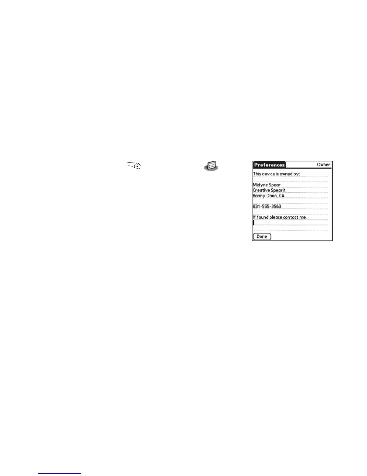 system lock your device, the Owner Preferences information appears on the screen
