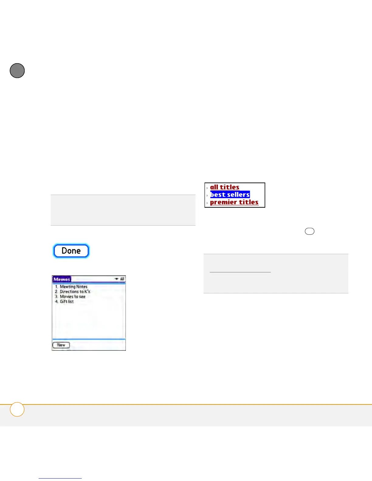 onscreen button (such as Done, New, or