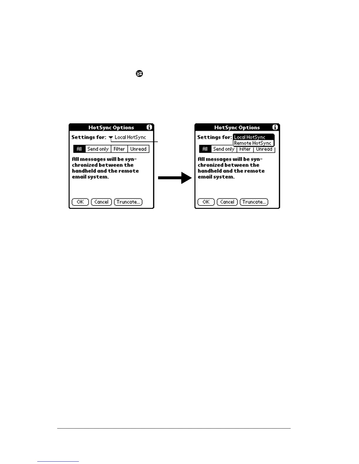 3. Tap the Settings for pick list and select Local HotSync or Remote