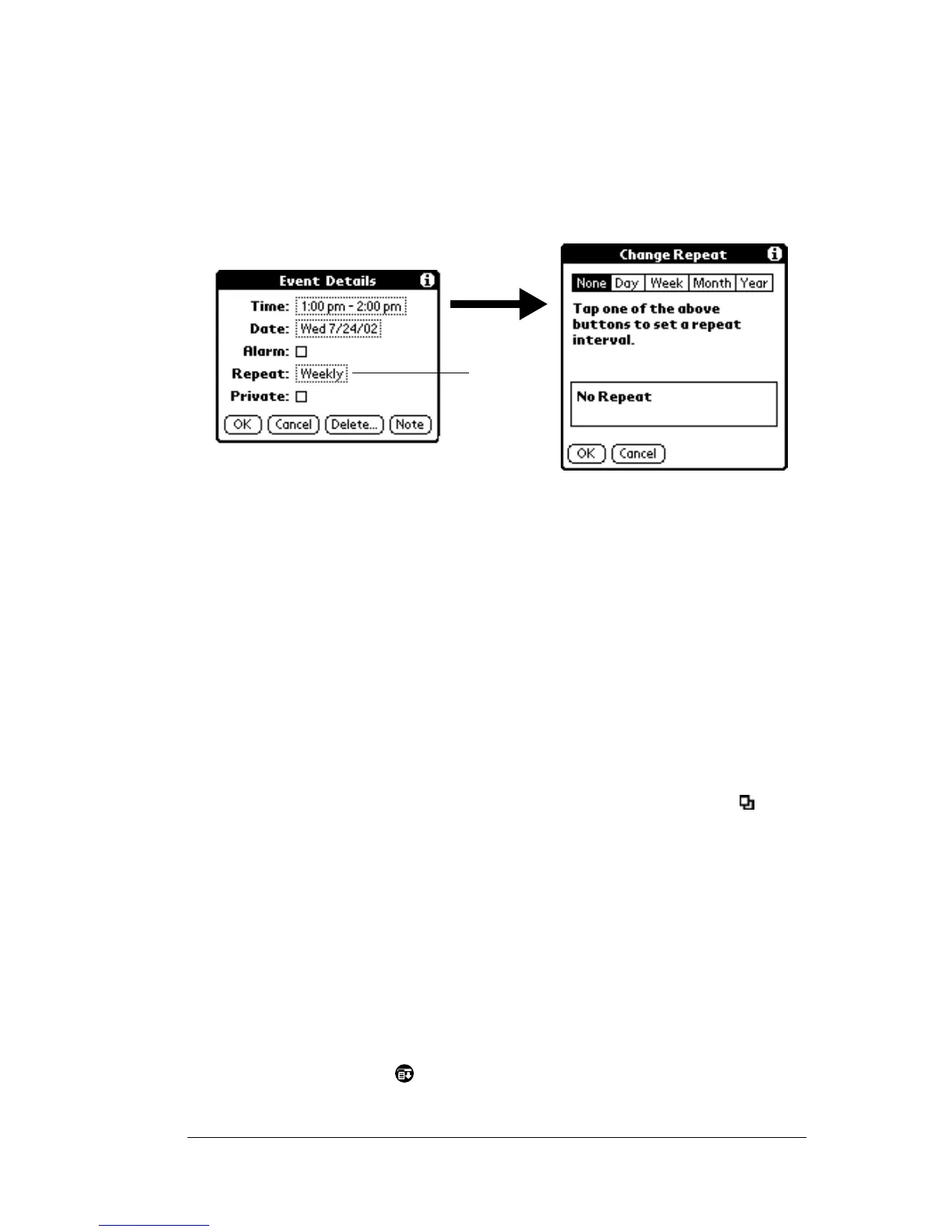 3. Tap the Repeat box to open the Change Repeat dialog box.
