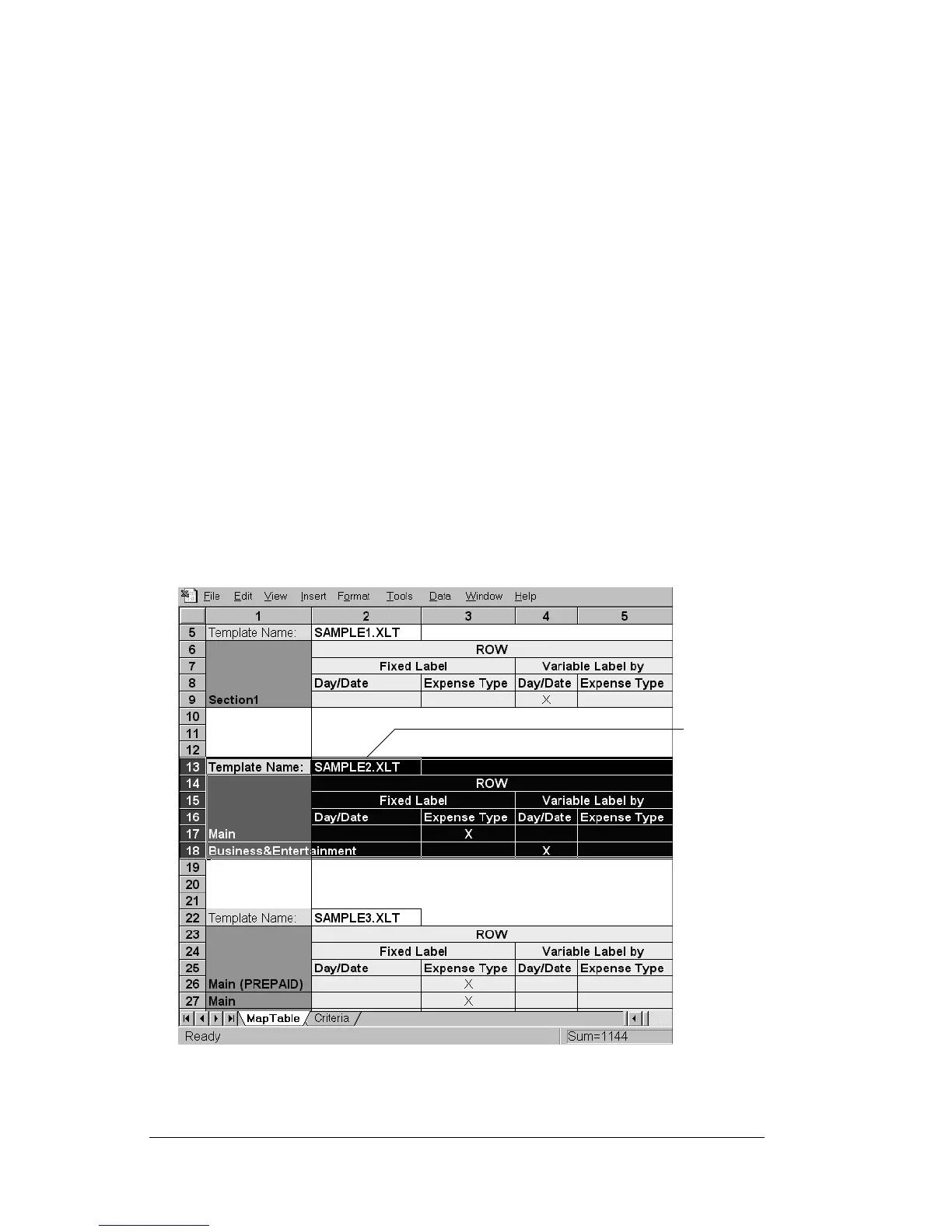 of the template will appear in column B of the Maptable.xls file,