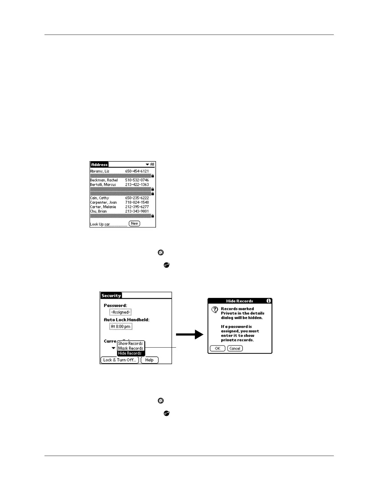 masked, and are marked with a lock icon. Hidden records disappear completely
