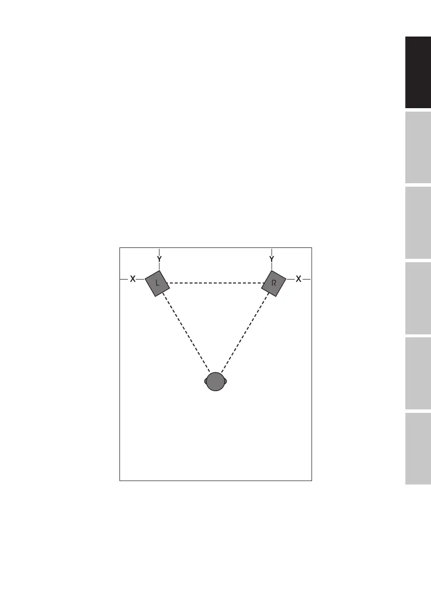 position, the left and right monitors form an equilateral triangle. The speakers should also be set up at the
