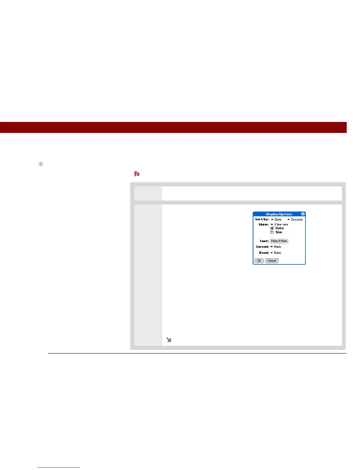 one-line or a two-line view. Defaults are Sender, Date, and Subject.