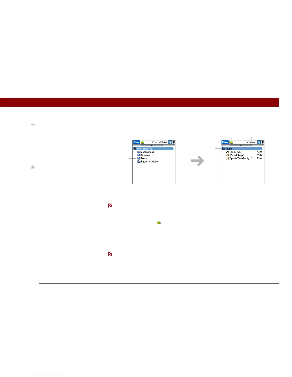 • Select the pick list at the top of the files screen to view and jump to the top-level folder and any