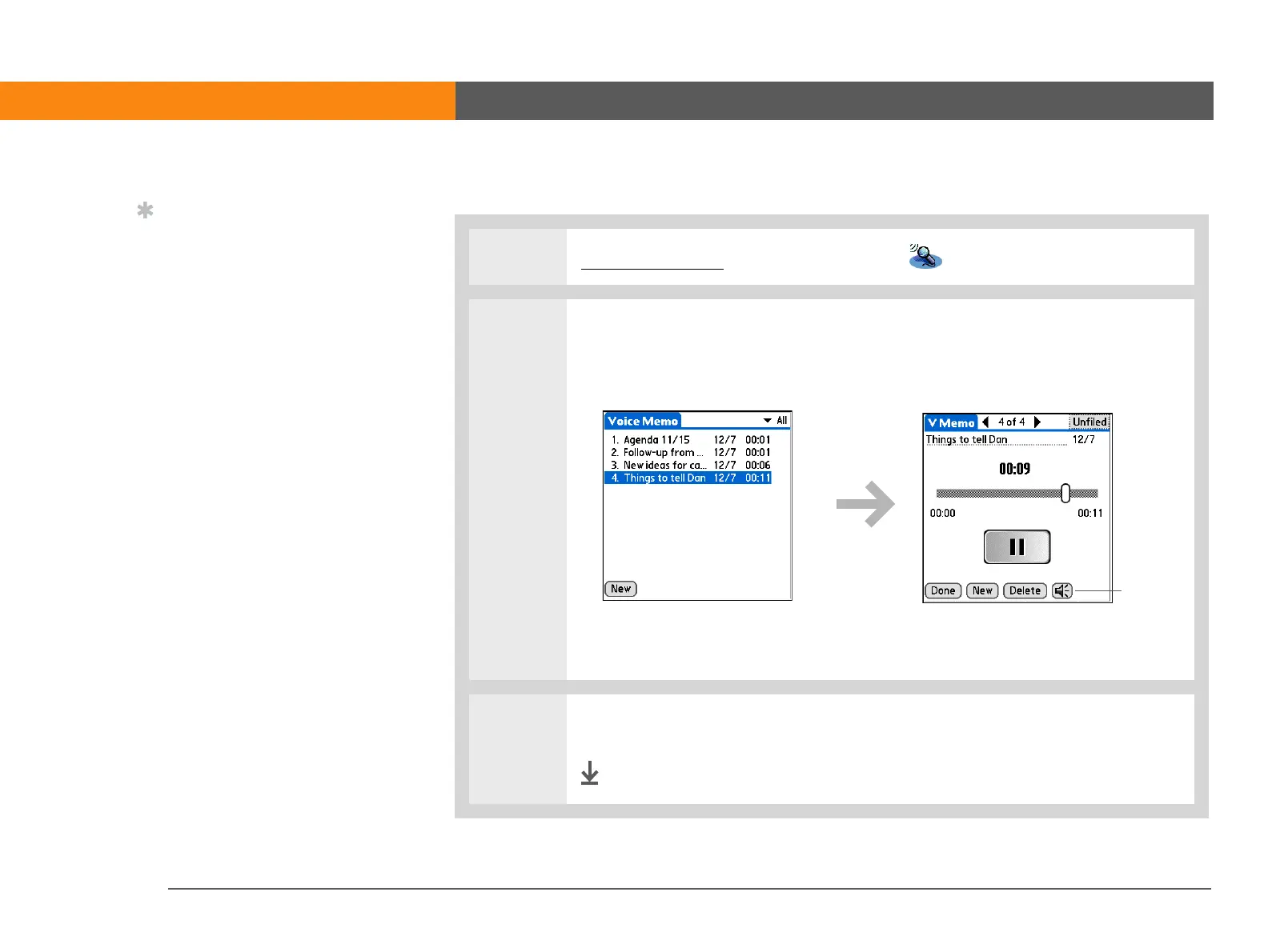 a. In the Voice Memo list, select the voice memo title. The voice memo begins