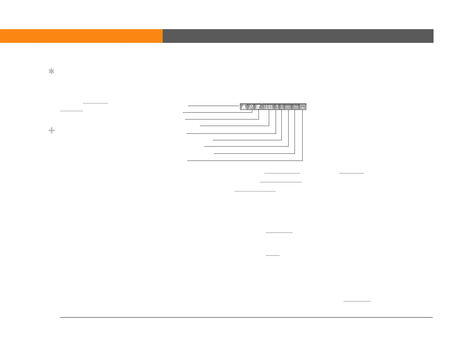 The status bar at the bottom of the device screen gives you access to valuable tools and is