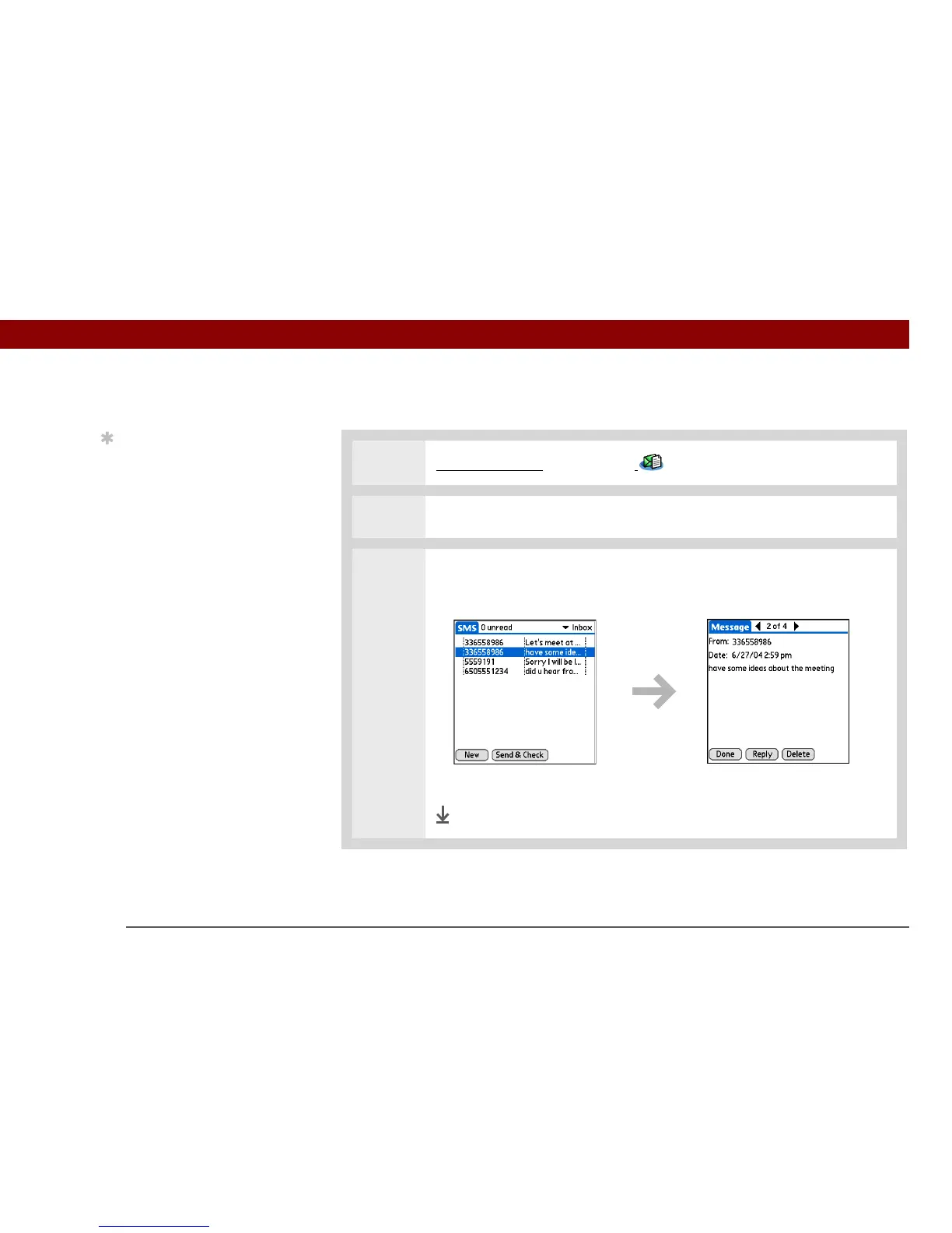 palmOne Tungsten E2 - Viewing a Text Message
