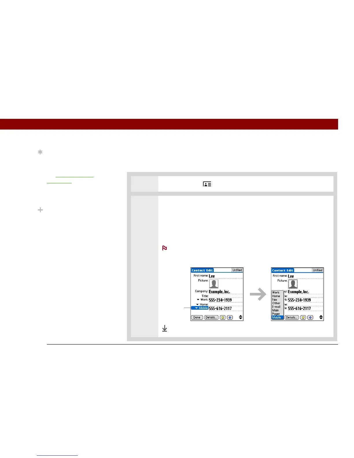 You can select the types of phone numbers (work, home, mobile, pager, and so on), as well as