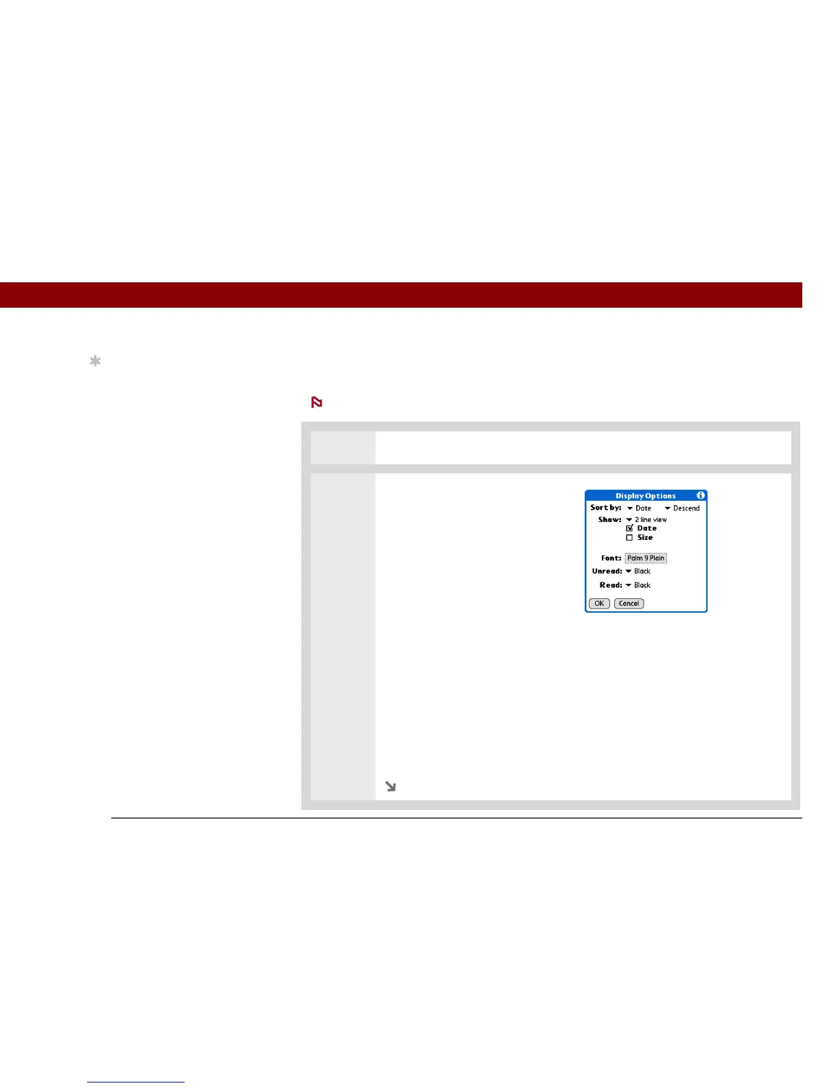 one-line or a two-line view. Defaults are Sender, Date, and Subject.
