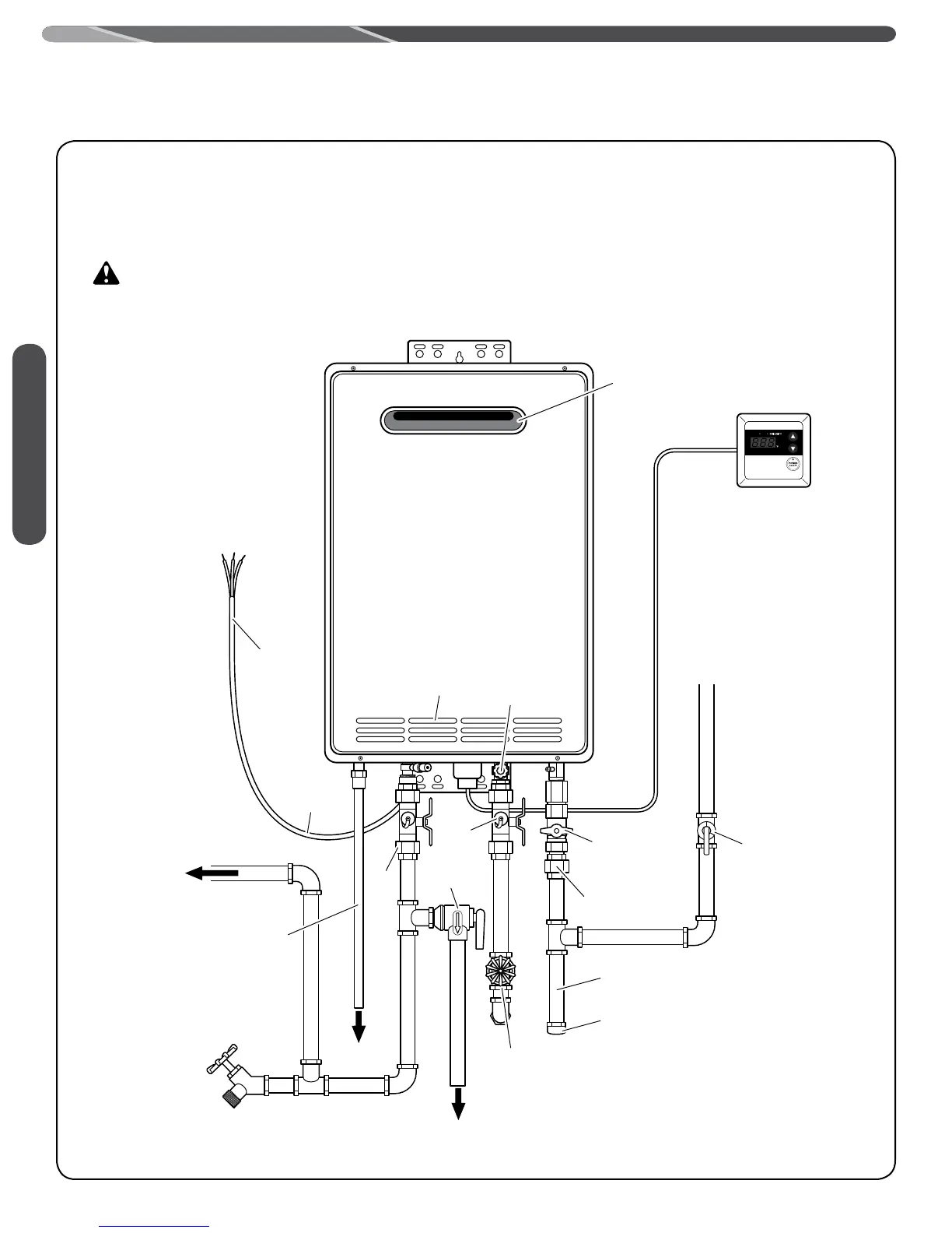 DANGER: DO NOT install this water heater indoors or in an enclosure. It is designed for