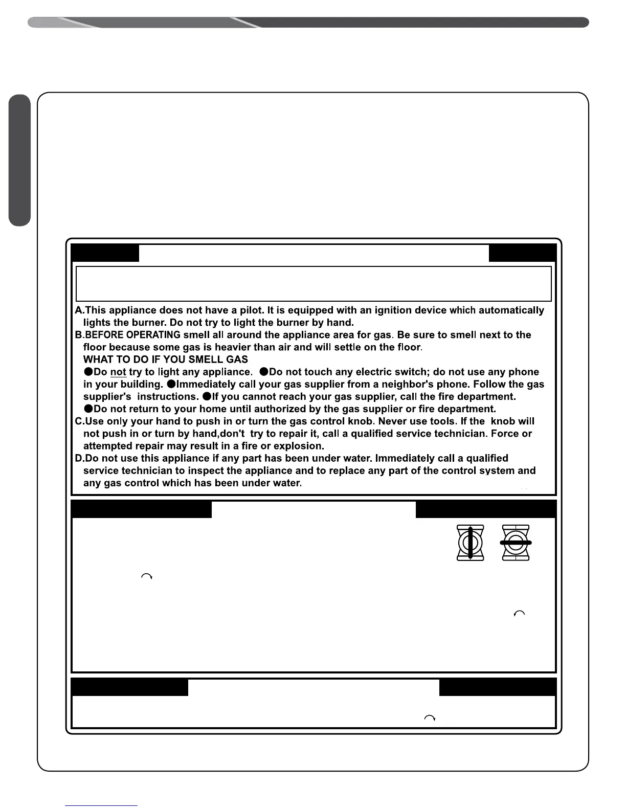 3.Do not attempt to light the burner by hand.