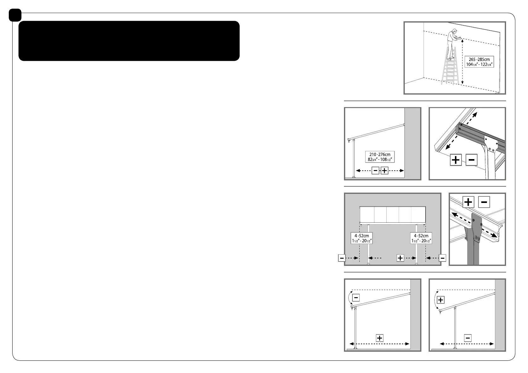 from 265 to 285 cm (104¼” to 122¼”) above ground.