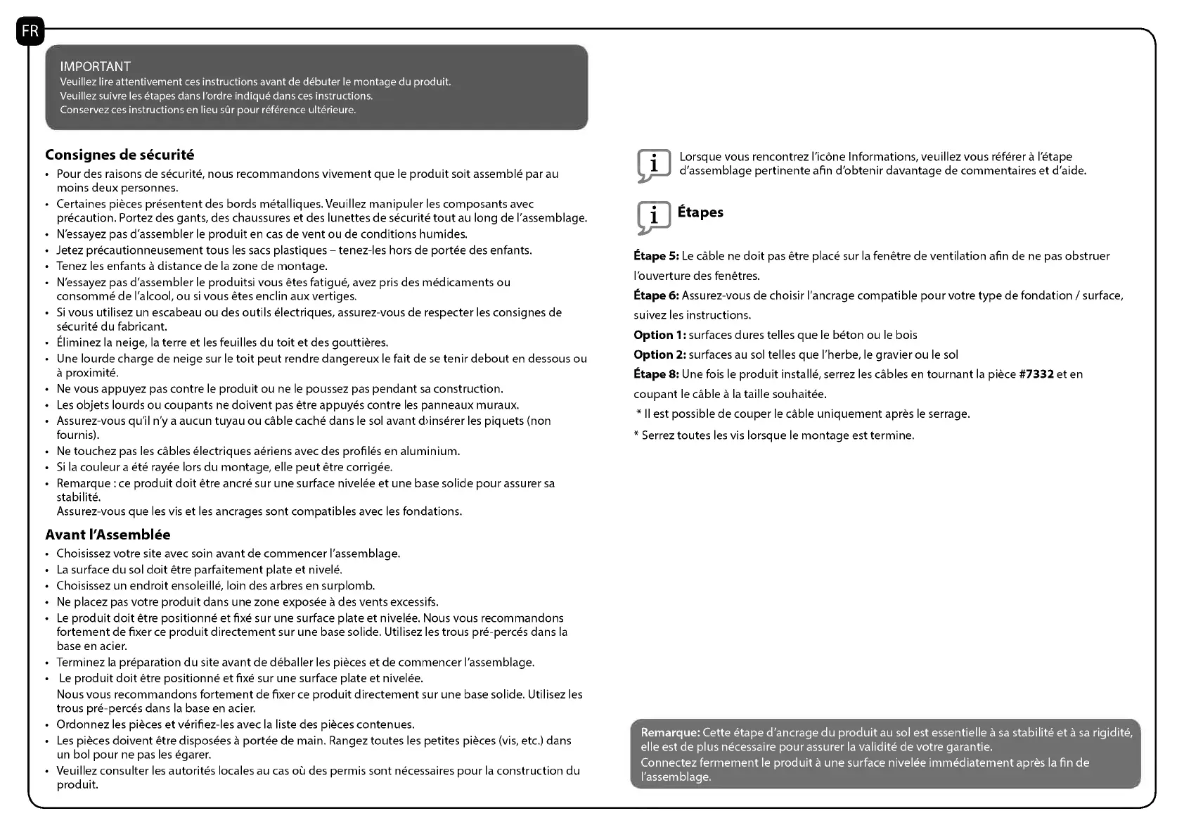 Remarque: Cette etape d'ancrage du produit au sol est essentielle a sa stabilite et a sa rigidite,