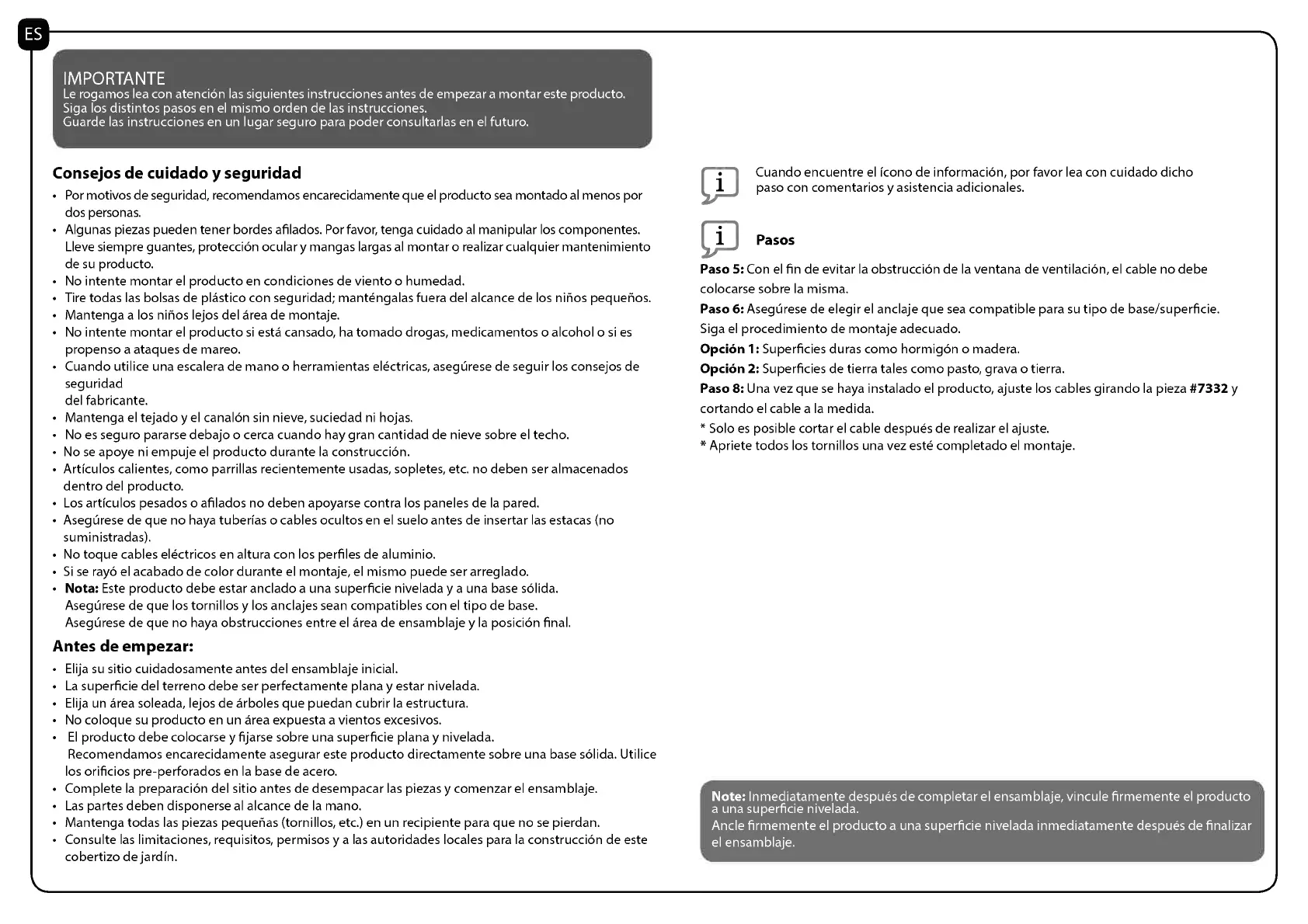 Le rogamos lea con atencion las siguientes instrucciones antes de empezar a montar este producto.