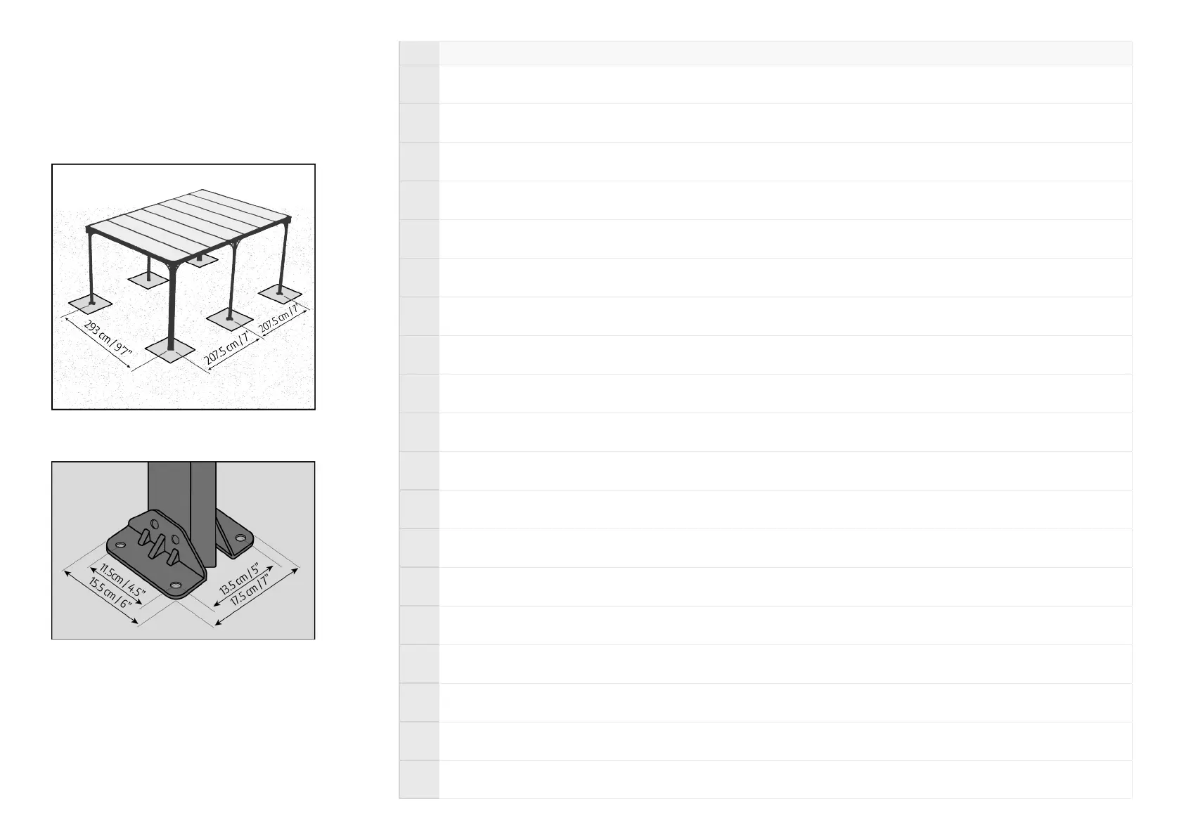 Ilustrācijā aprakstīts attālums, kādam jābūt no viena staba centra līdz otra staba centram.