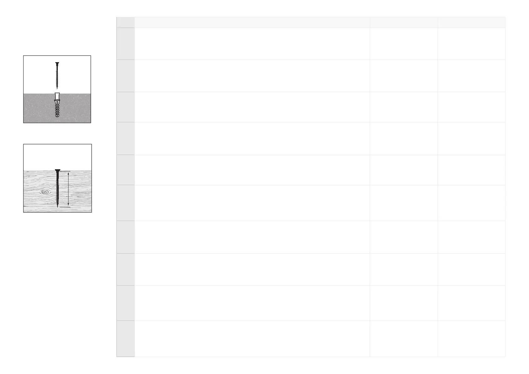 Komplektācijā iekļautās mūra skrūves un enkuri ir piemēroti tikai stiprināšanai pie betona/īžu grīdām un sienām.