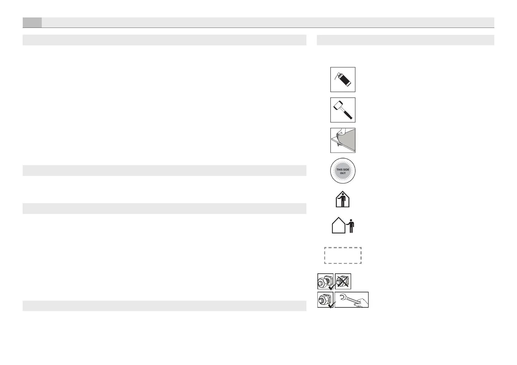 produsul direct pe o fundație solidă. Asigurați-vă că nu există obstacole între zona de asamblare și poziția finală a produsului.