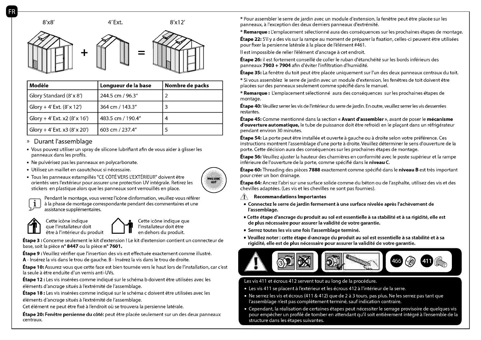 * Si vous assemblez le serre de jardin avec un module d'extension, les fenetres de toit doivent etre