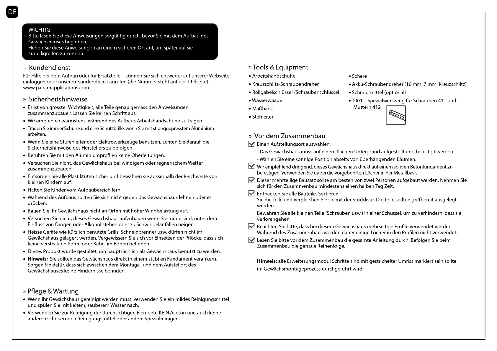 Dieses Produkt wurde gestaltet, urn hauptsachlich als Gewachshaus benutzt zu werden.