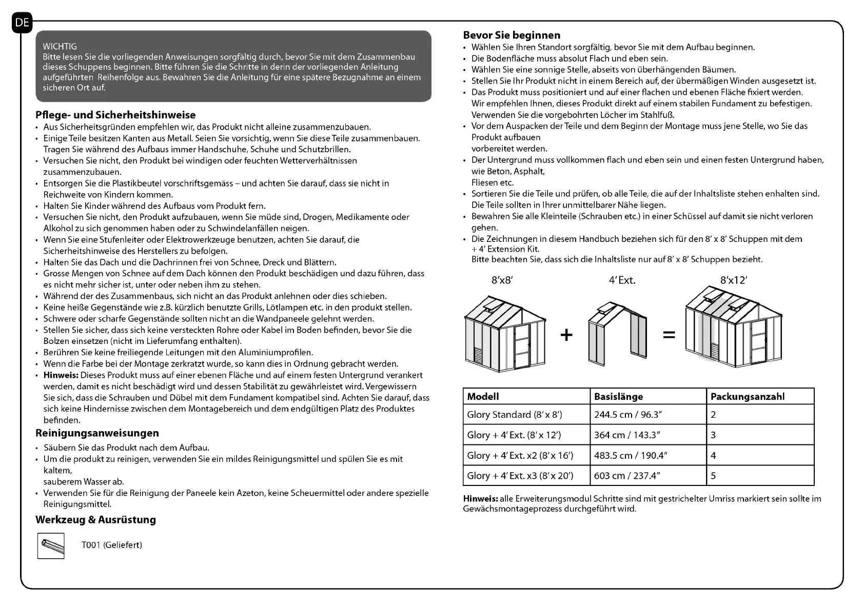Bitte lesen Sie die vorliegenden Anweisungen sorgfaltig durch, bevor Sie mit dem Zusammenbau