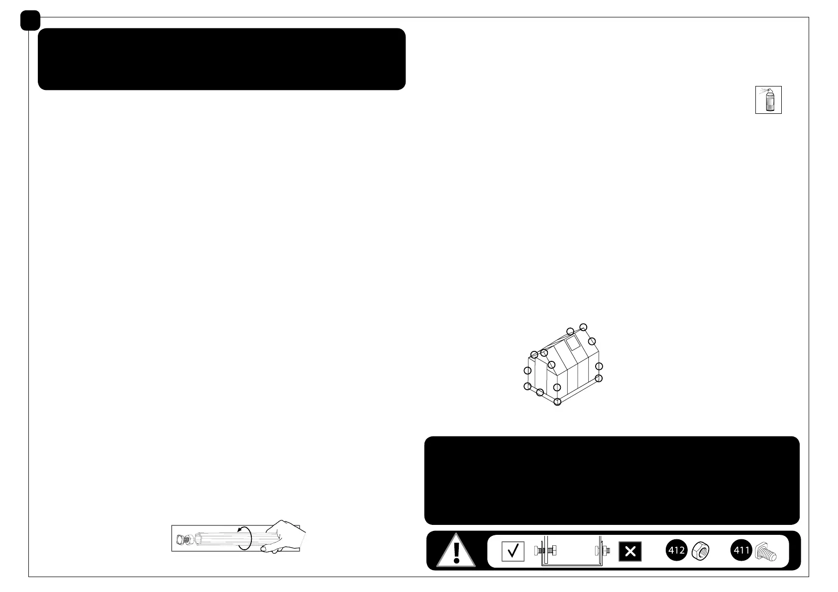 No apriete los tornillos y tuercas (411 y 412) más de 2-3 vueltas. No los apriete hasta