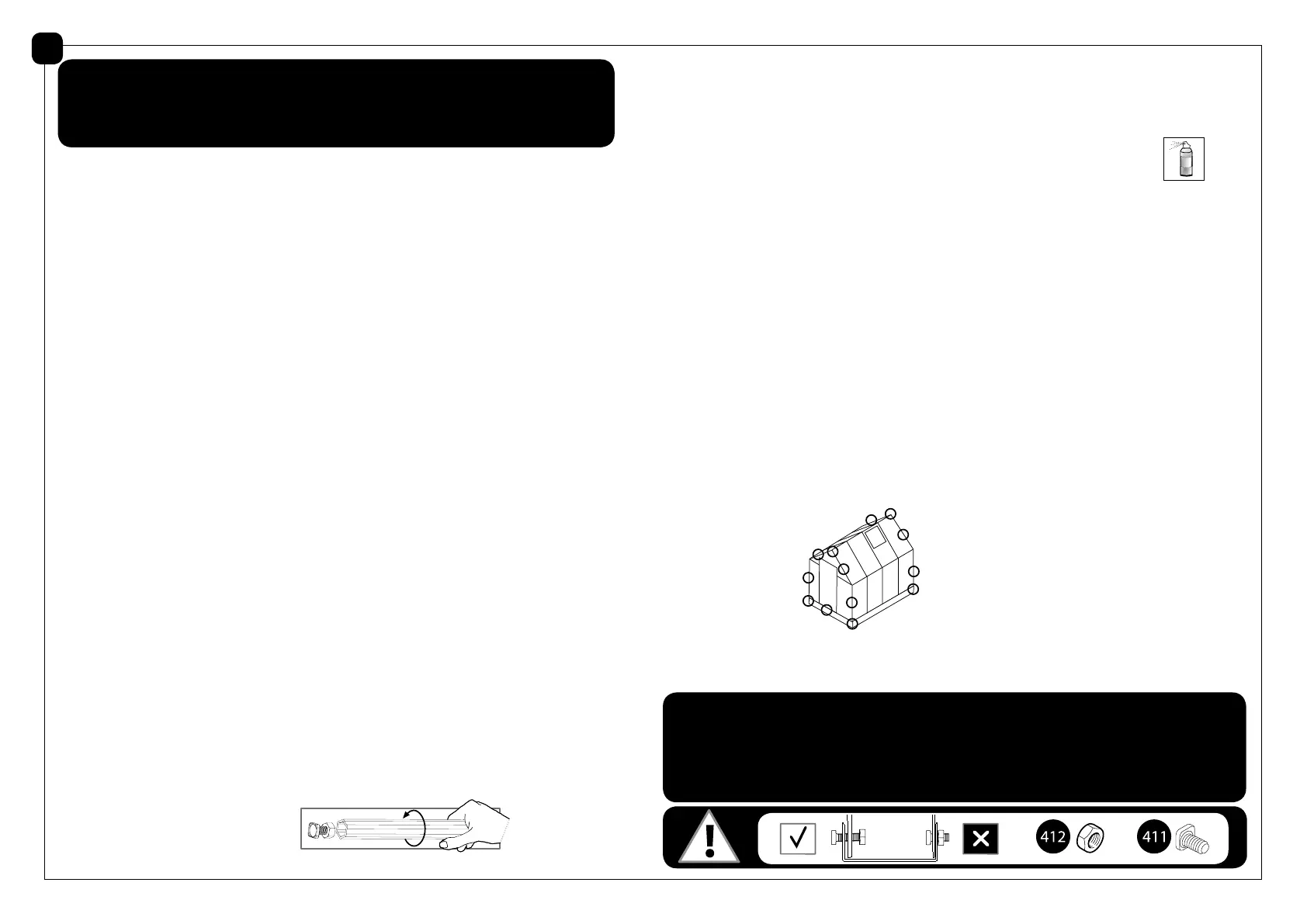 Nepievelciet skrūves un uzmavas (411 un 412) ciešāk kā 23- apgriezieni. Nepievelciet