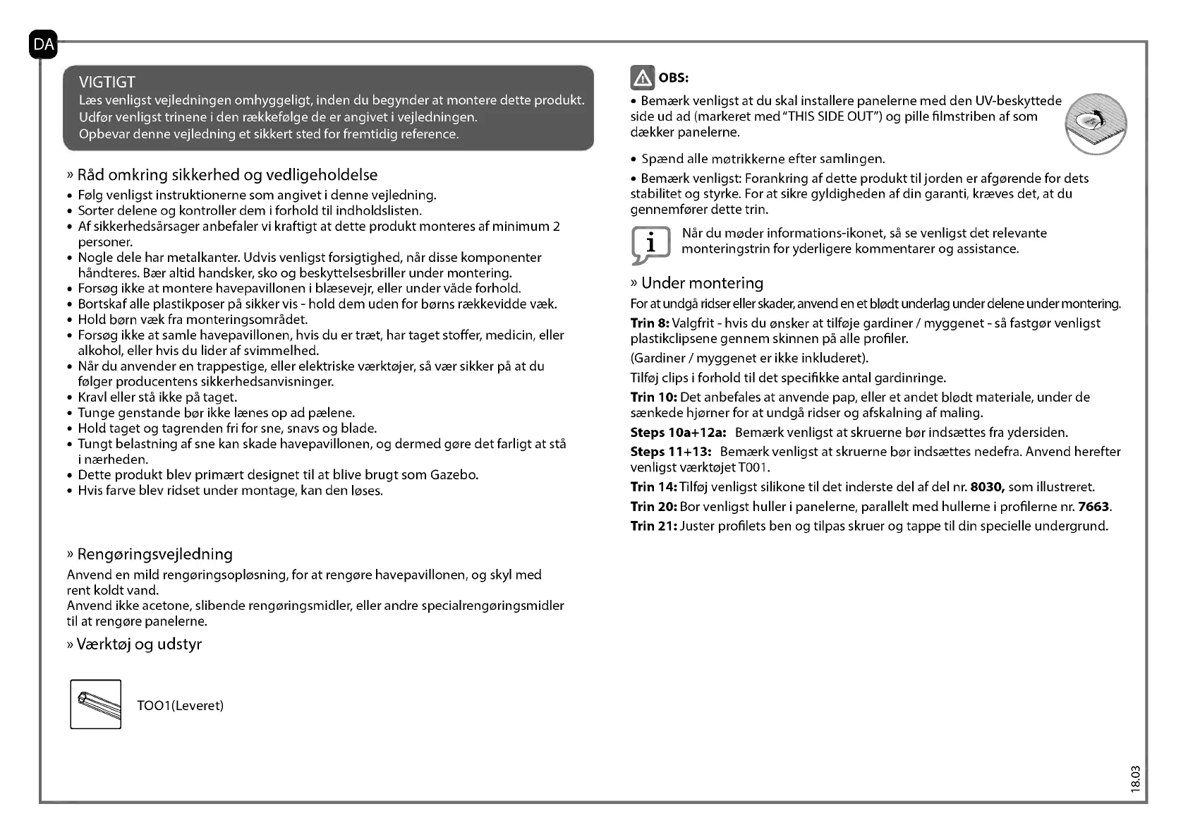 Forsog ikke at montere havepavillonen i blsevejr, eller under va'cle forhold.
