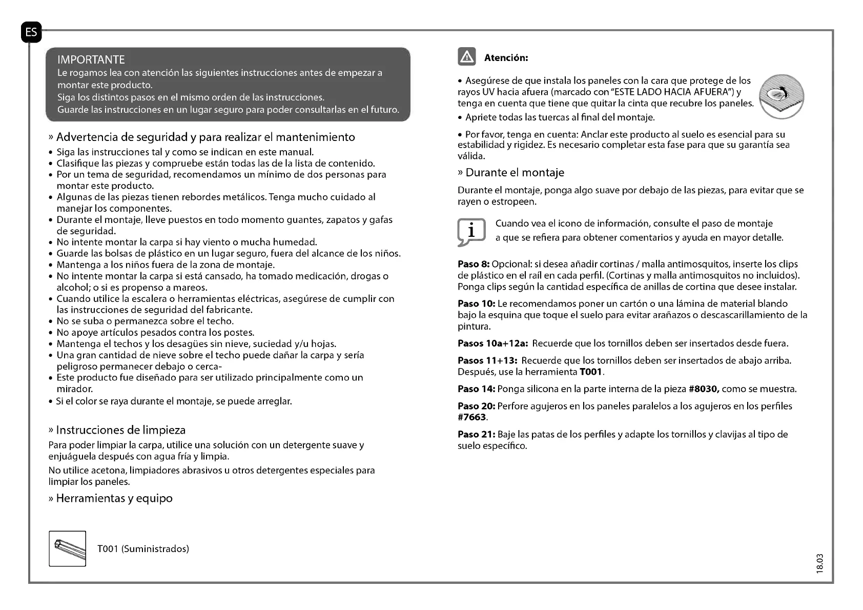 Aseg6rese de que instala los paneles con la cara que protege de los