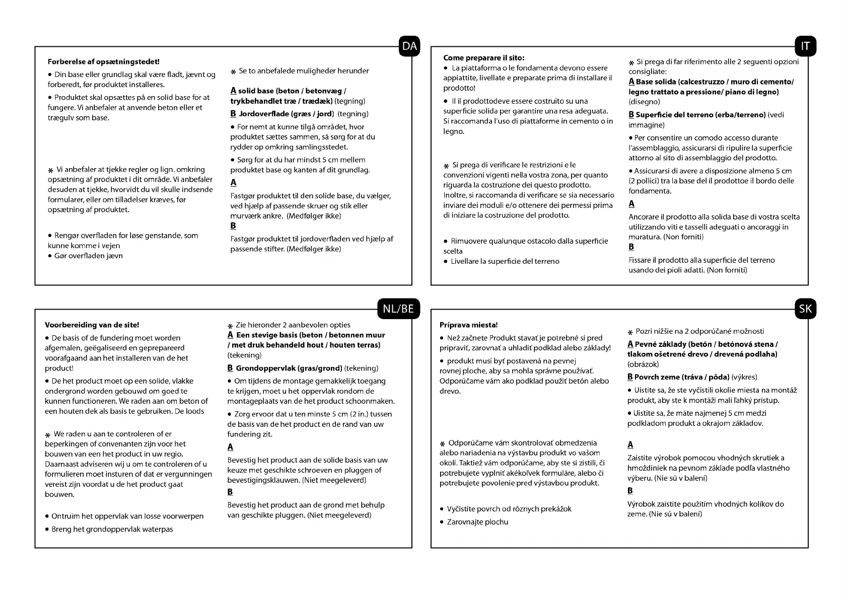 Produktet skal opsttes pa en solid base for at