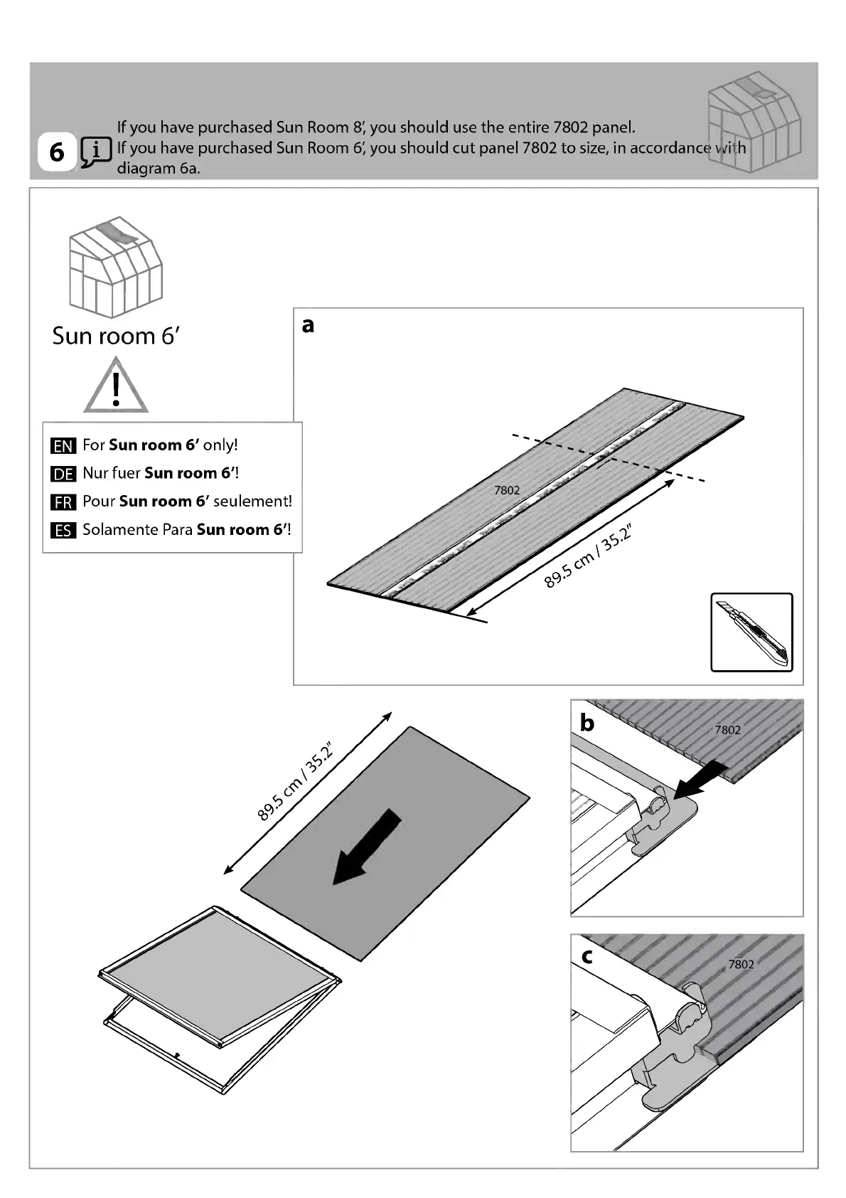 If you have purchased Sun Room 6', you should cut panel 7802 to size, in accordanc