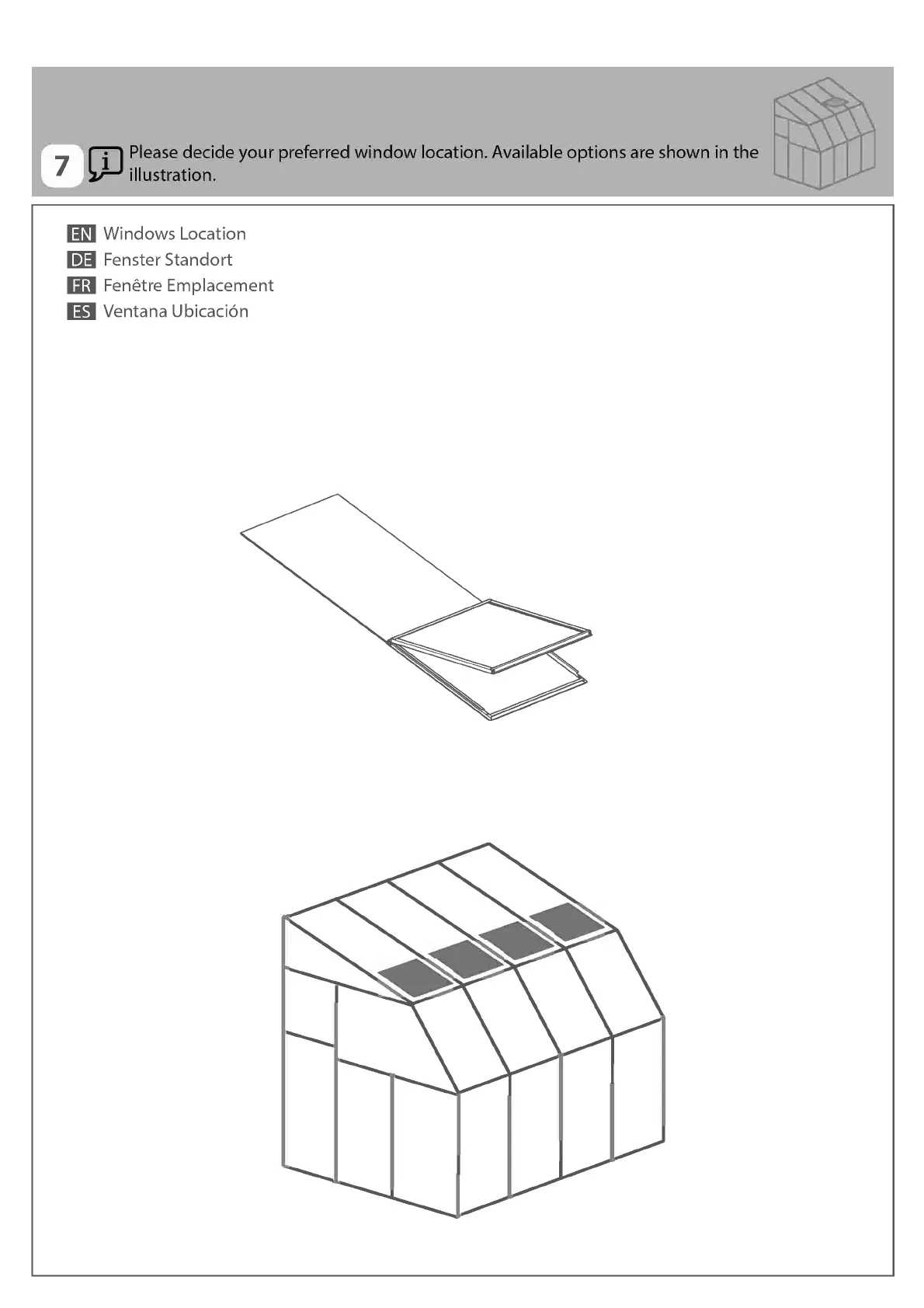 MPlease decide your preferred window location. Available options are shown in the