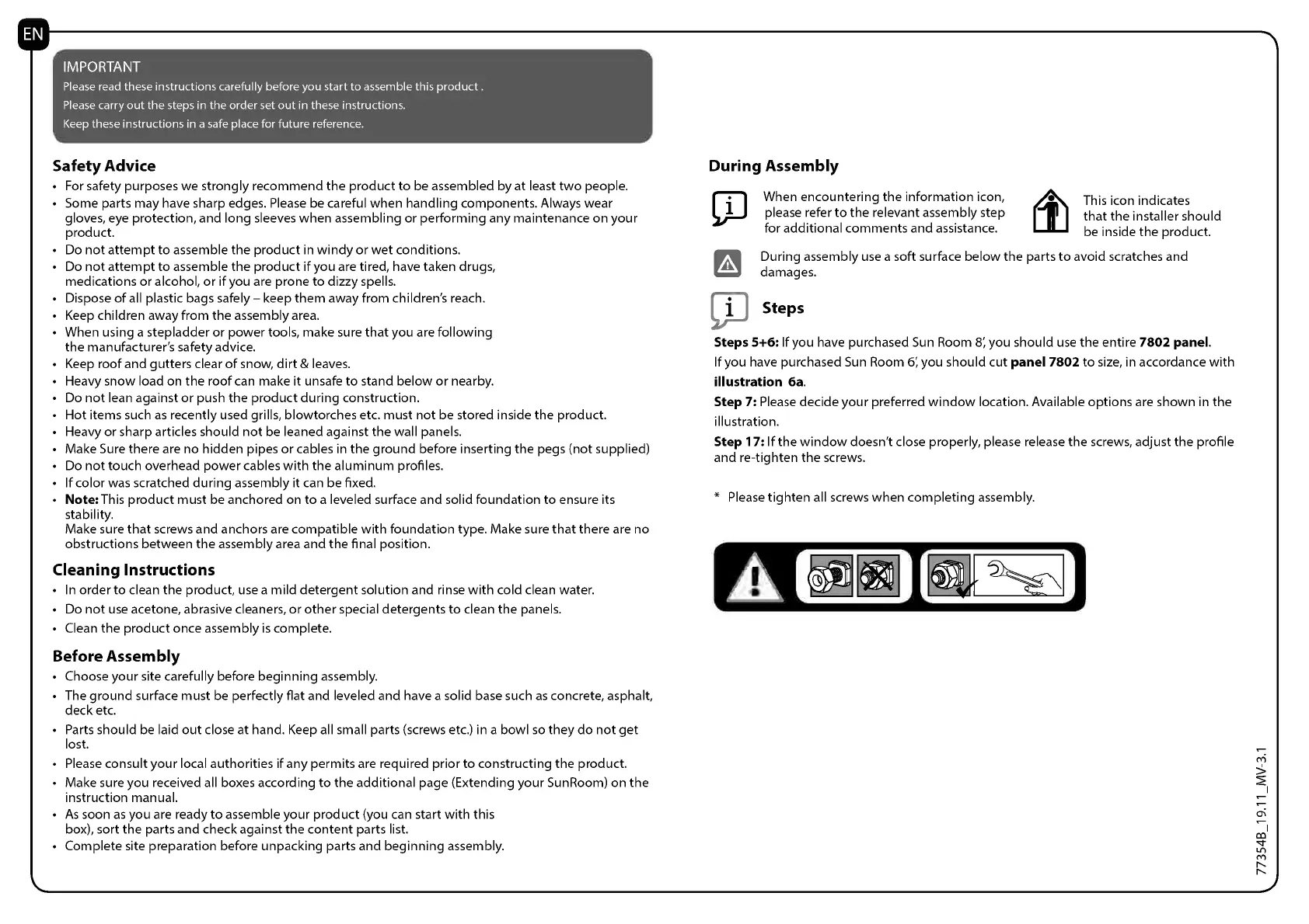 Steps 5+6: If you have purchased Sun Room 8', you should use the entire 7802 panel.