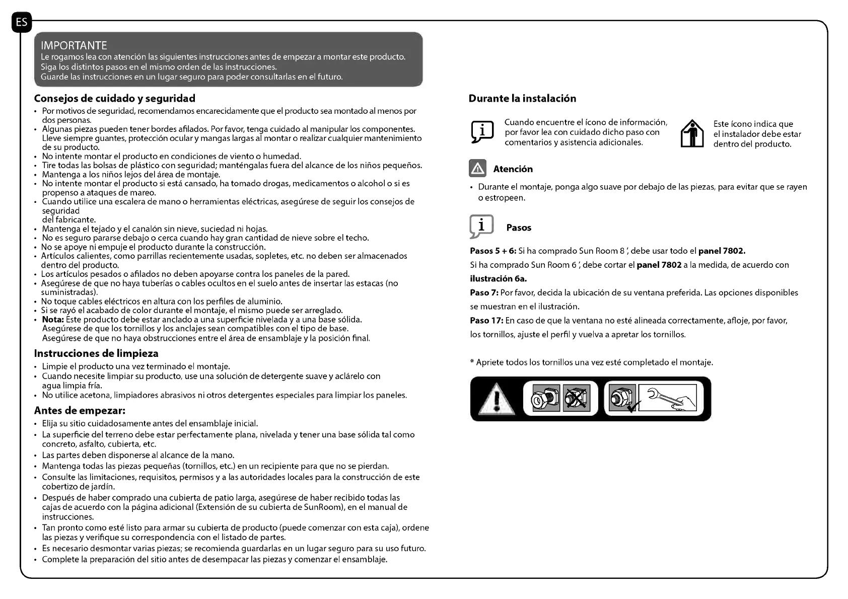 Le rogamos lea con atencion las siguientes instrucciones antes de empezar a montar este producto.