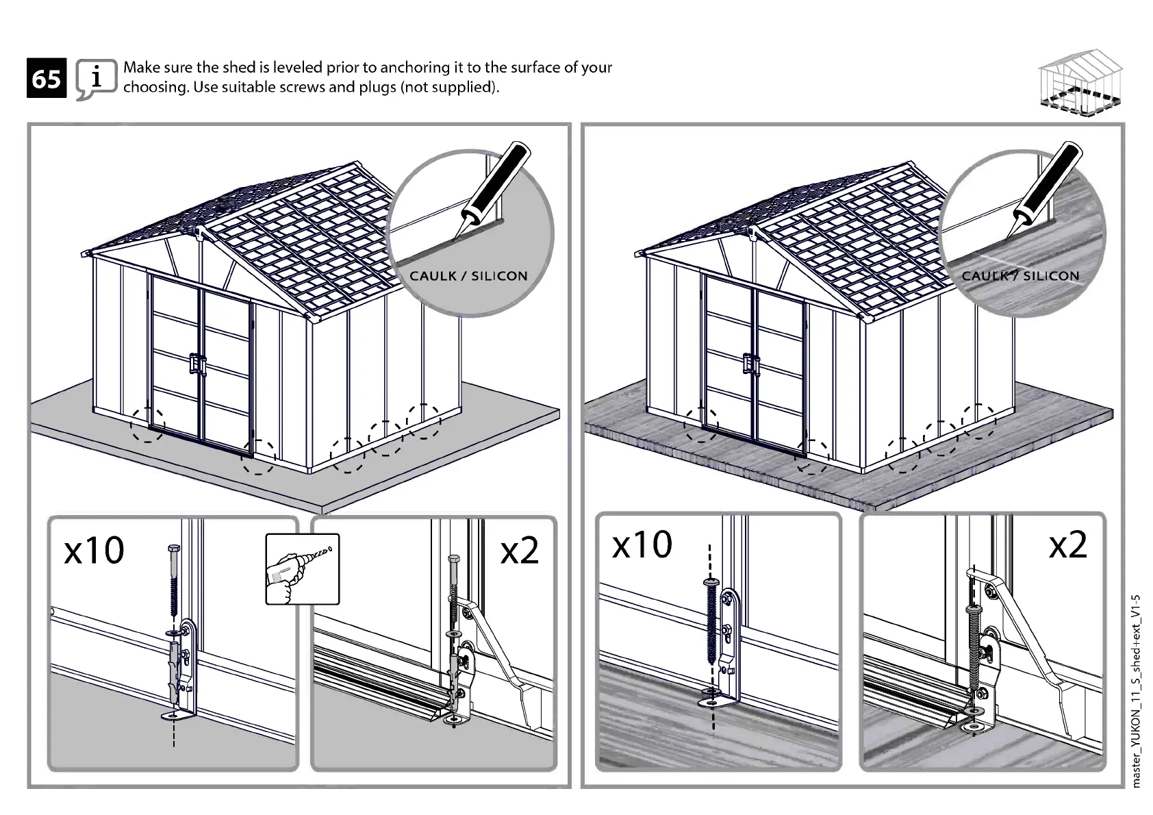 Make sure the shed is leveled prior to anchoring it to the surface of your