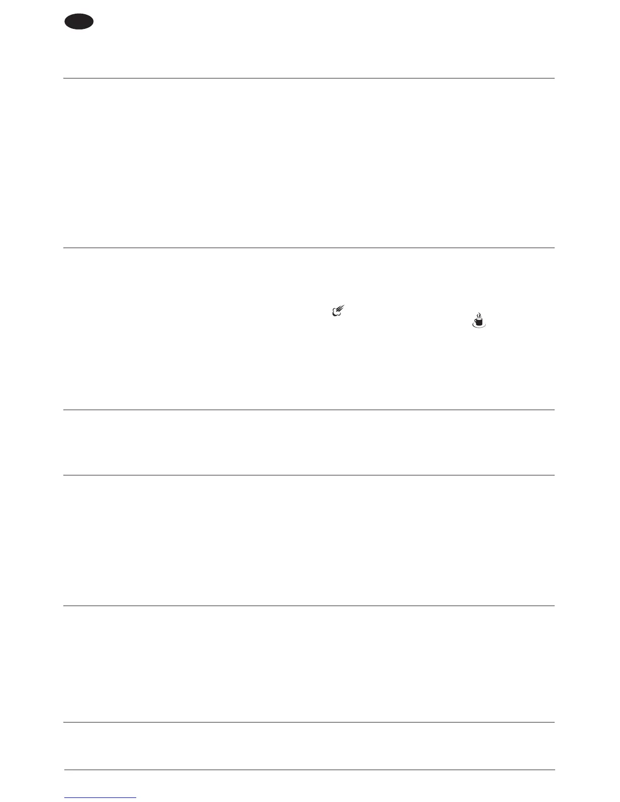 Nem folyik ki kávé. Nincs víz a víztartályban. Töltse meg a tartályt vízzel.