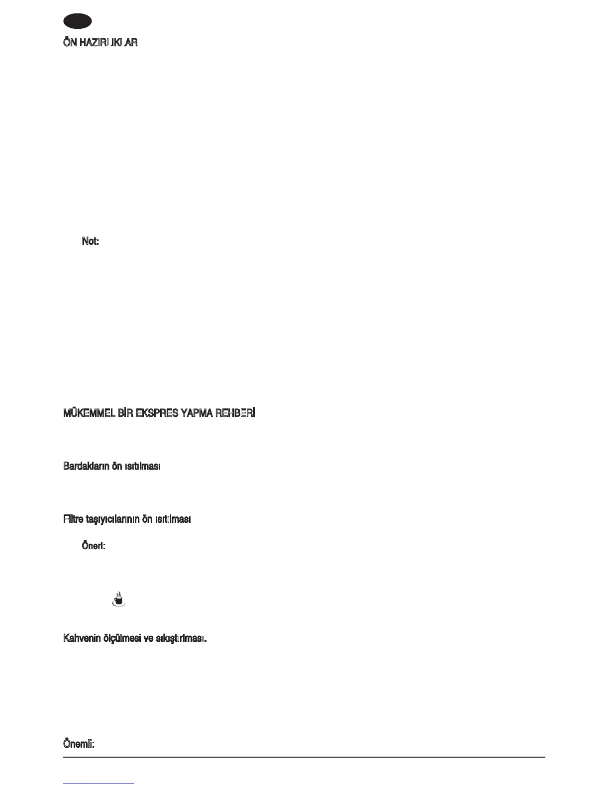 Önemli: Kahve makinanñzñ ilk kez kullanmadan önce ya da uzun bir süre kullanmadñxñnñz dönemlerde, exer yeniden