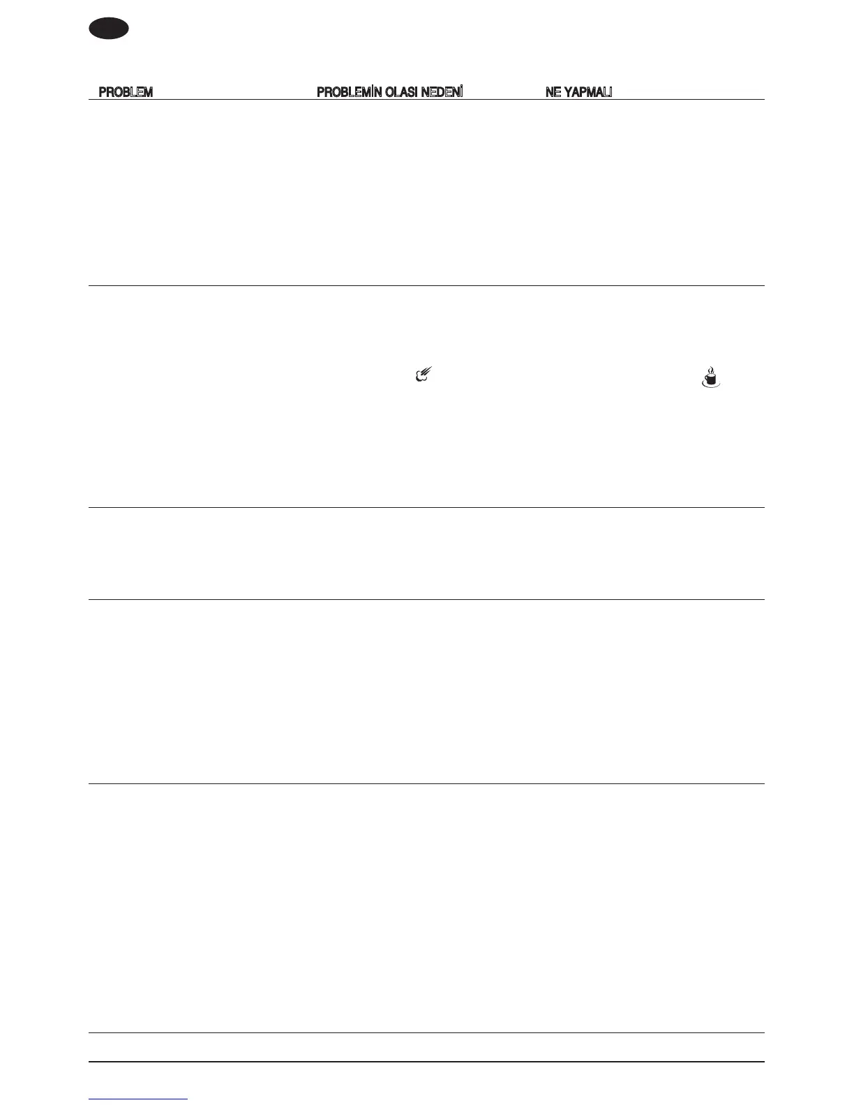 Kahve çñkmñyor. Su depozitosunda su yok. Depozitoyu suyla doldurunuz.