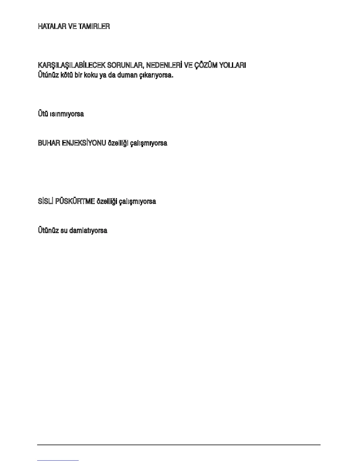 pozisyonunda olmalñdñr. Ütü yatay pozisyonda olmalñdñr. Buhar enjeksiyon düxmesine tekrar