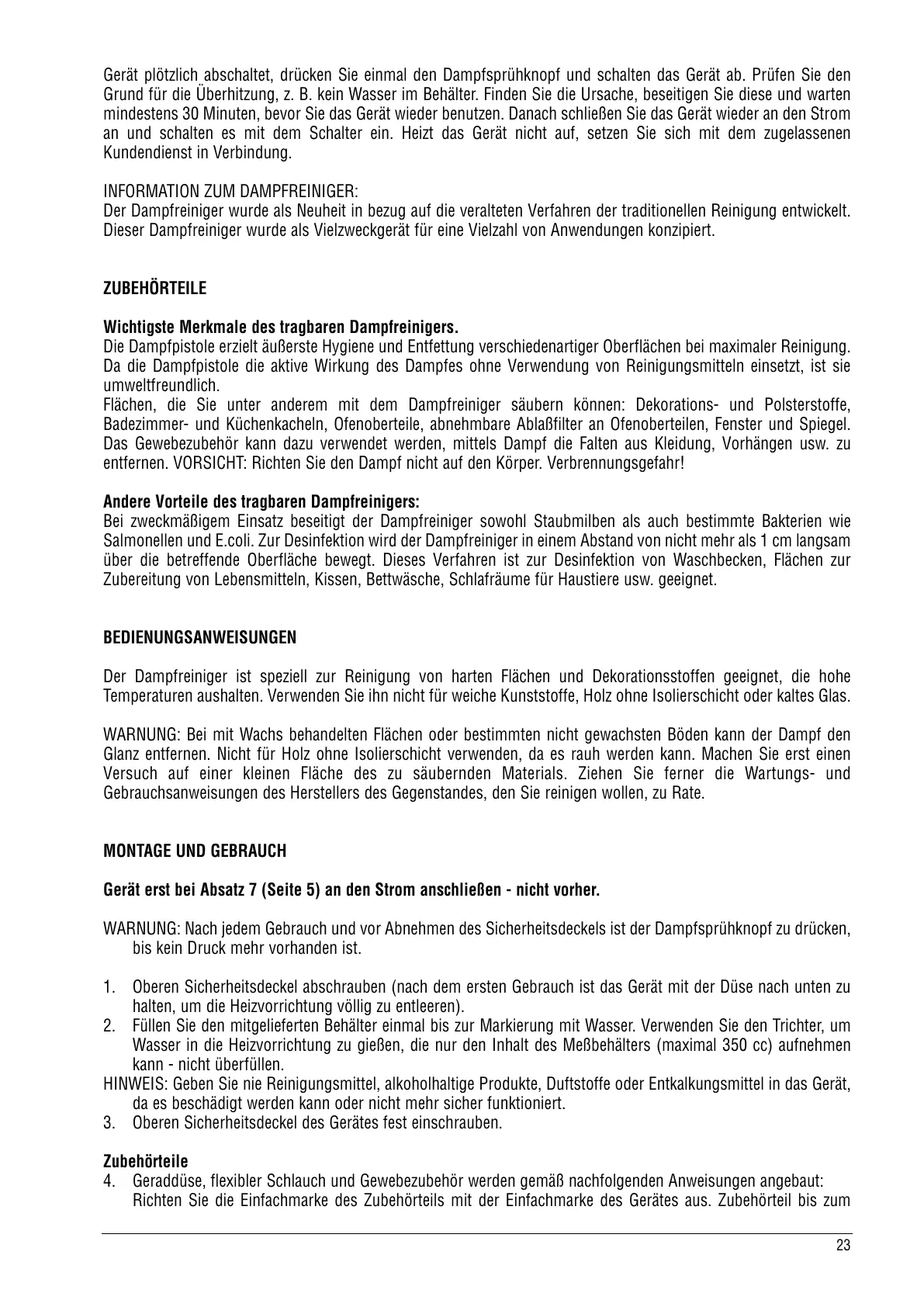 INFORMATION ZUM DAMPFREINIGER: