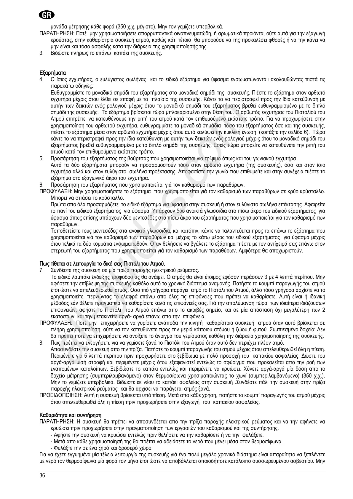 PARATHRHSH: H suskeuñ qa prépei na aposundéetai apo thn príza parocñv hlektrikoú reúmatov kai na thn afñnete na