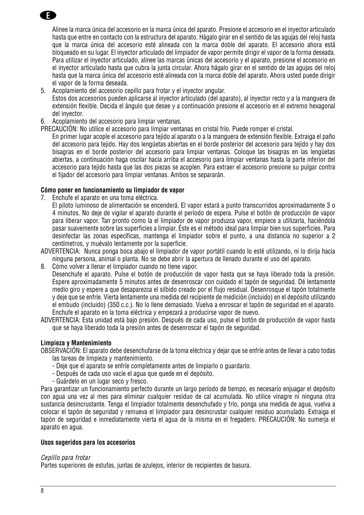 ADVERTENCIA: Nunca ponga boca abajo el limpiador de vapor portátil cuando lo esté utilizando, ni lo dirija hacia