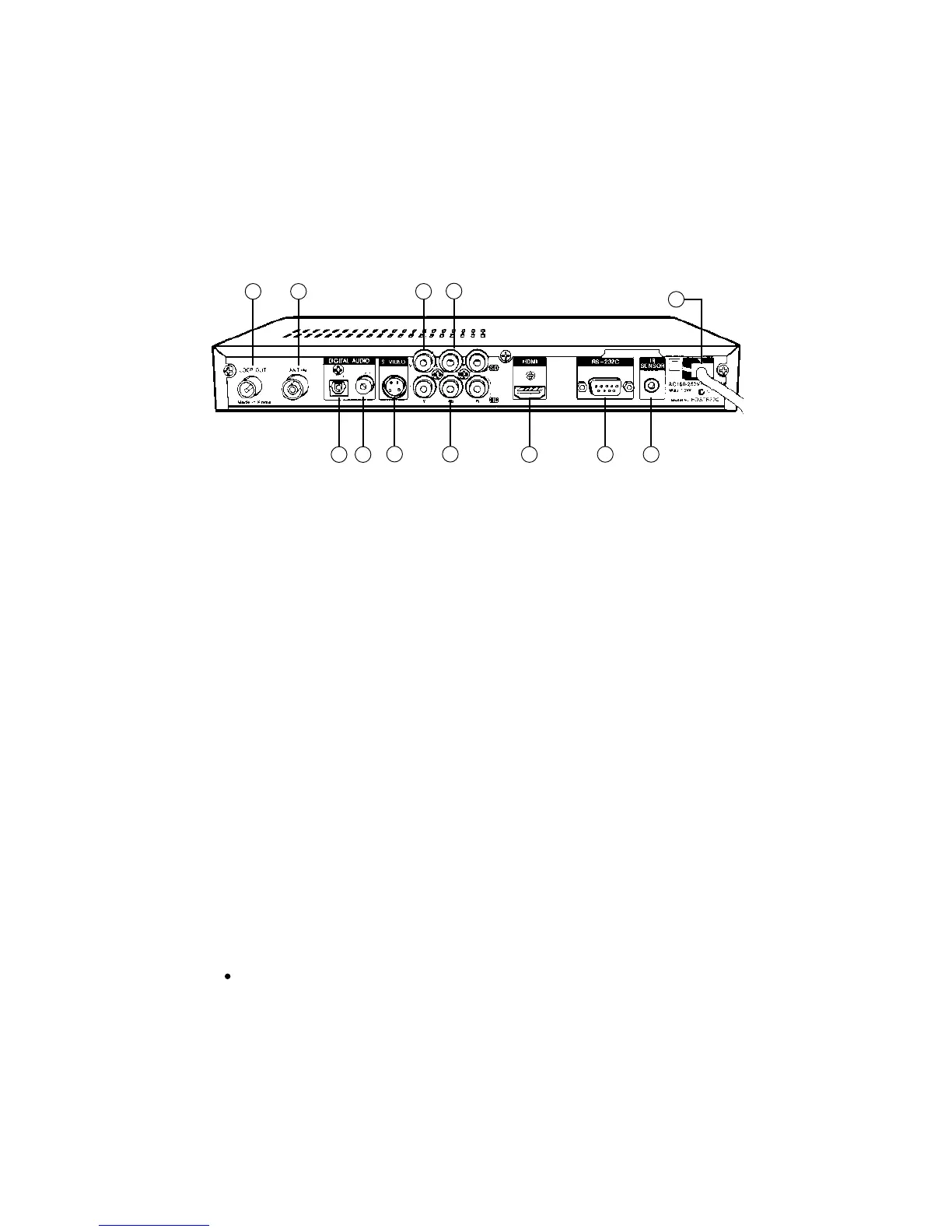 Use this terminal to feed RF signal to your TV or VCR for analogue TV reception.