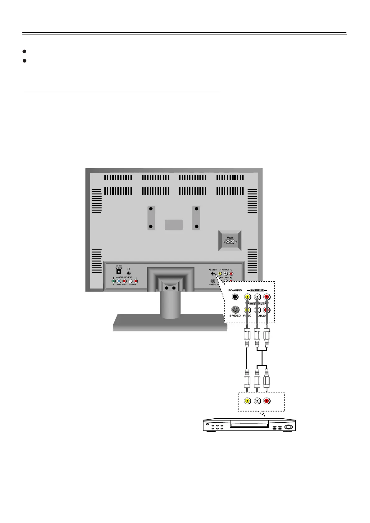 Use the audio and video cable to connect the input jacks on the rear panel of the unit to the external