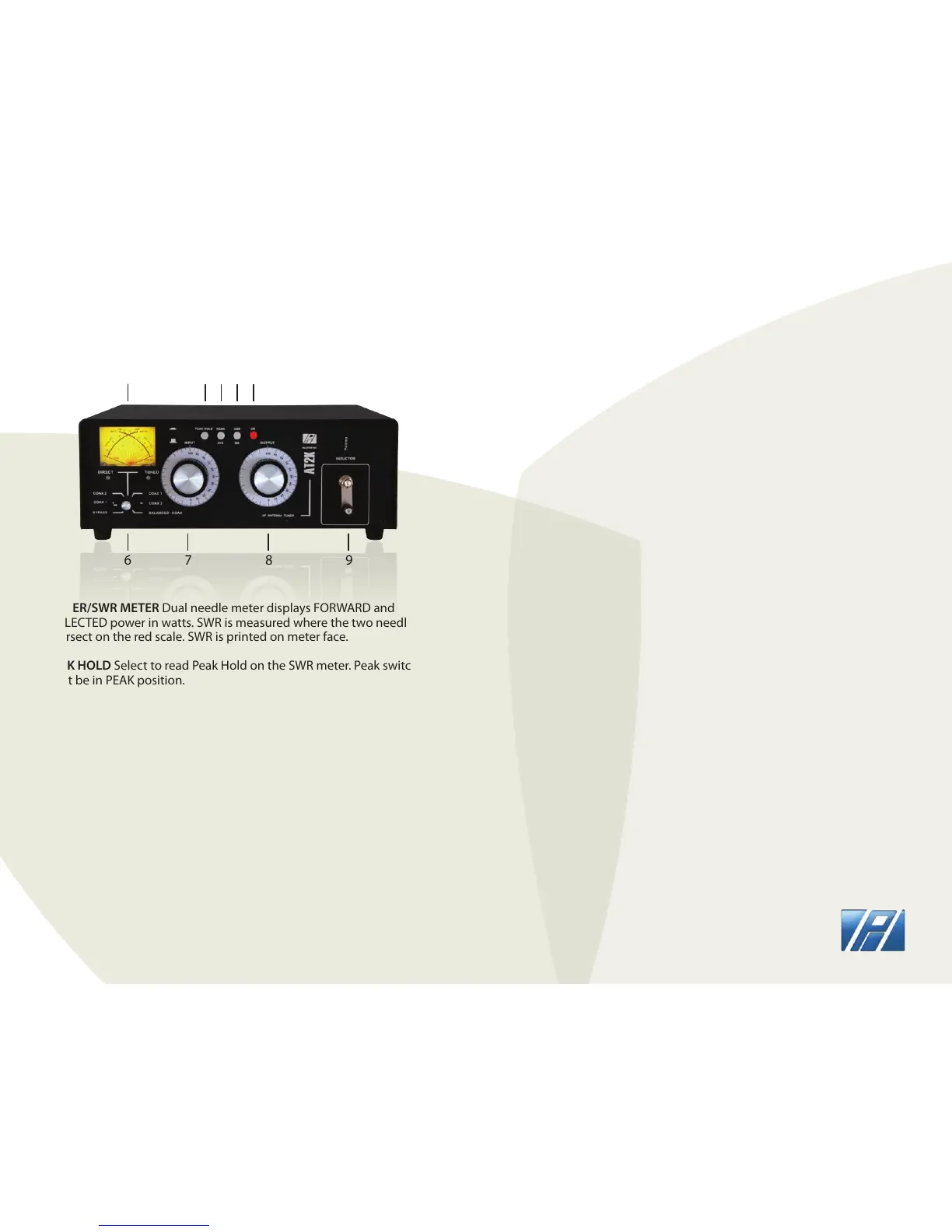 2. PEAK HOLD Select to read Peak Hold on the SWR meter. Peak switch [3]