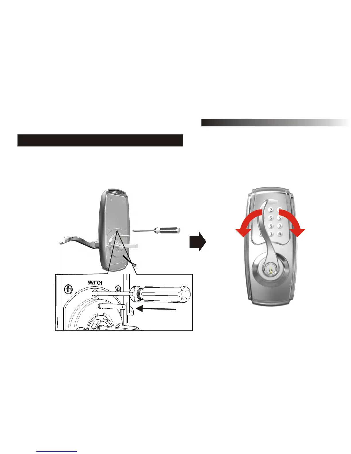 Use a screwdriver to press the button in the hole below ''SWITCH'' mark of the exterior assembly
