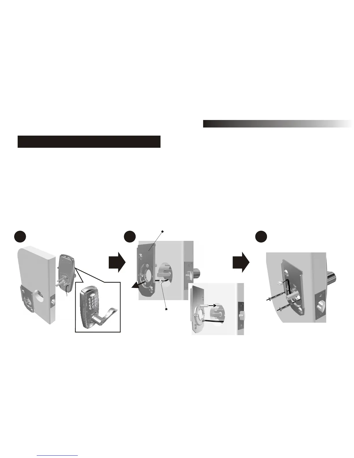 A. Slide the spindle and screw posts through the latch and thread the cable under the latch.