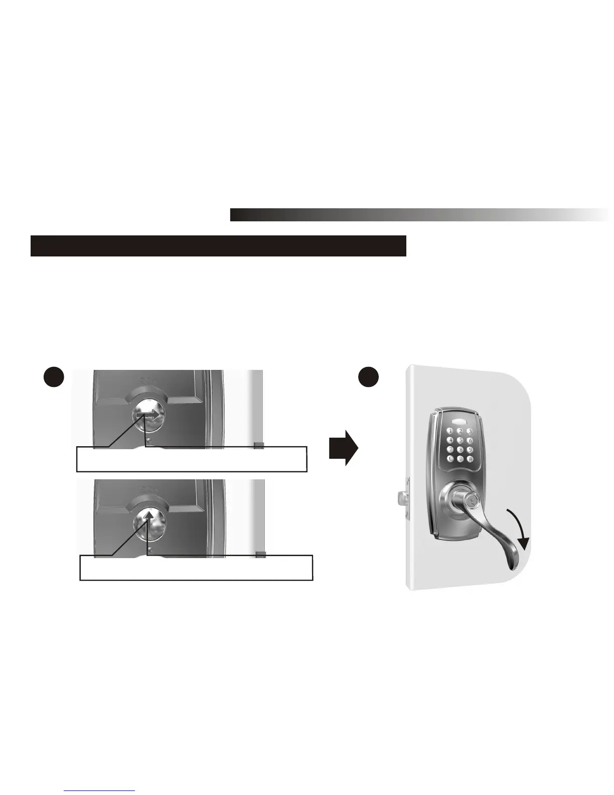 A. Use a flat tool to turn the thumbturn on the inside to vertical position as shown to activate