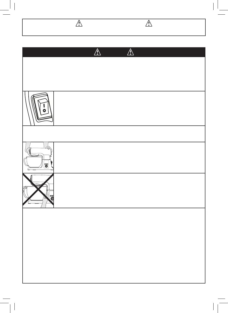 • Use caution when moving the unit. Make sure the bowl and tilting mixer head