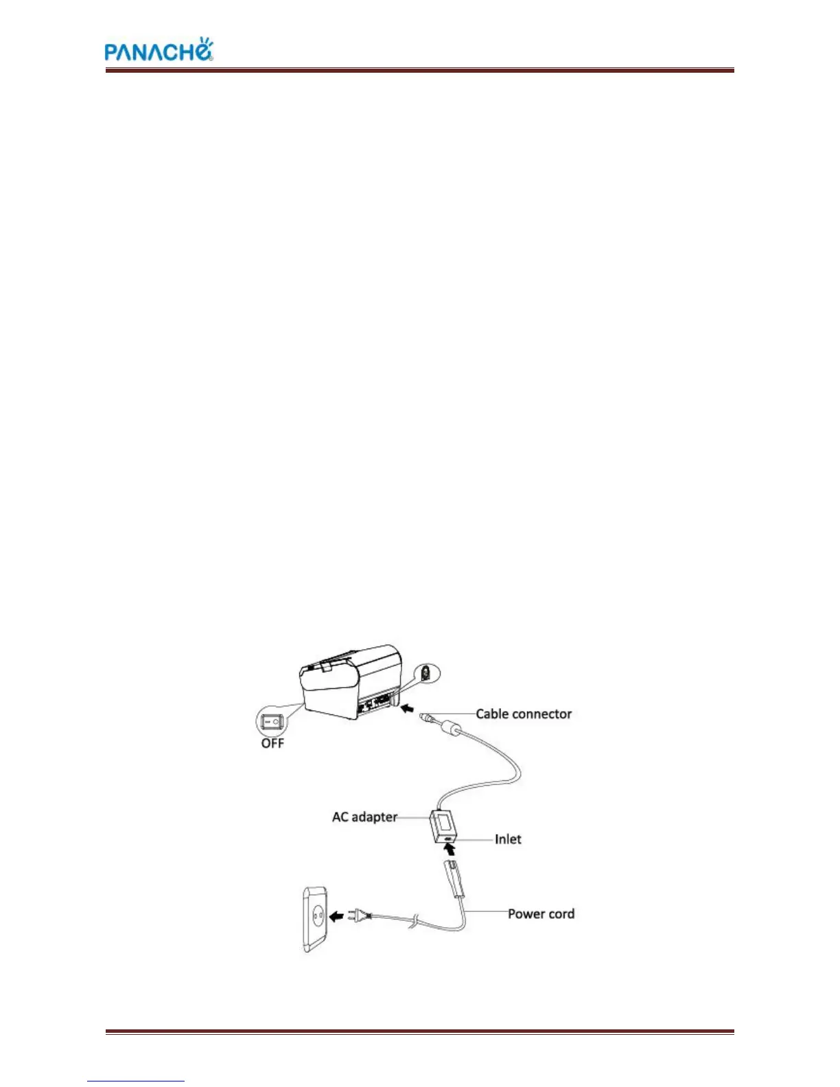 3.Connect the Power cord to the inlet of AC adapter, and insert the Power cord